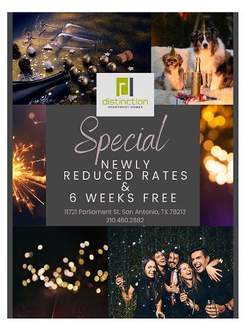 Experience the finest apartment living at Distinction Apartment Homes in San Antonio, Texas. Residents enjoy the convenience of abundant shopping at the Northstar Mall, nearby entertainment hotspots, and elegant dining. We are also minutes from San Antonio International Airport, with easy access to Interstates 410 and 10. There are endless possibilities living at Distinction Apartment Homes!